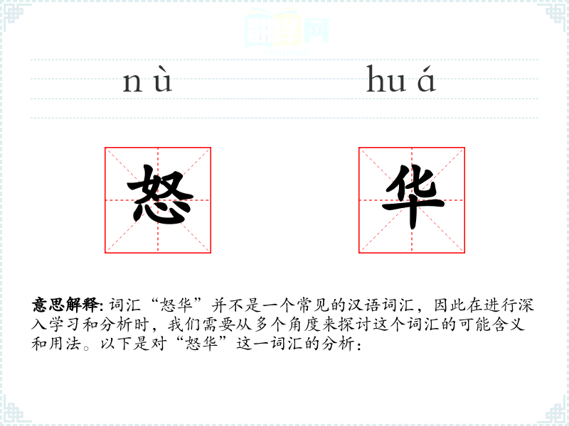 由于“怒华”不是一个标准词汇,我们可以尝试从字面意思来解释: