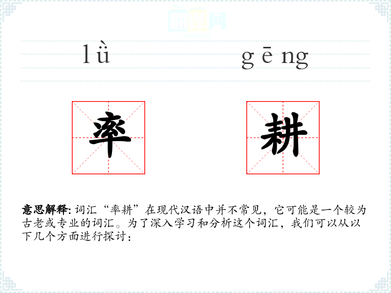 词汇“率耕”在现代汉语中并不常见,它可能是一个较为古老或专业的词汇。为了深入学习和分析这个词汇,我们可以从以下几个方面进行探讨:
