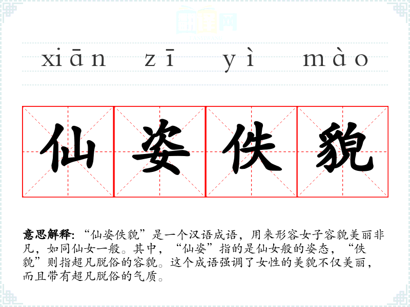 “仙姿佚貌”这个成语源自**古代文学,特别是在描述神话或仙侠故事中的女性角色时经常使用。随着时间的推移,这个词汇逐渐被用来形容现实生活中的美丽女性,但其核心意义——超凡脱俗的美貌——始终未变。