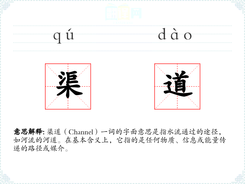 在英语中,“channel”对应“渠道”,在商业和通信领域有相似的用法。在其他语言中,如法语的“canal”或德语的“Kanal”,也有类似的含义。
