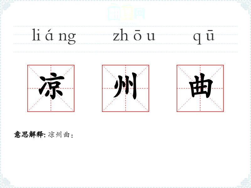 - 字面意思:凉州,古代**的一个地名,位于今甘肃省武威市一带。曲,指乐曲或歌曲。