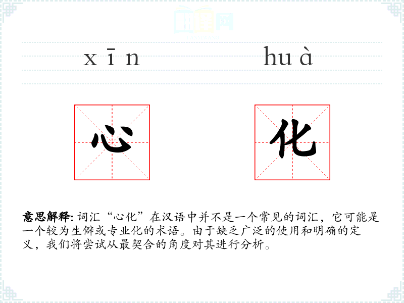 词汇“心化”在汉语中并不是一个常见的词汇,它可能是一个较为生僻或专业化的术语。由于缺乏广泛的使用和明确的定义,我们将尝试从最契合的角度对其进行分析。