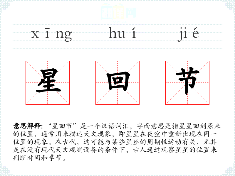 “星回节”这个词汇不仅包含了天文现象的描述,还承载了丰富的文化意义和历史价值。在语言学*和表达中,了解这样的词汇可以帮助我们更好地理解古代文化和科学知识,同时也丰富了我们的语言表达能力。
