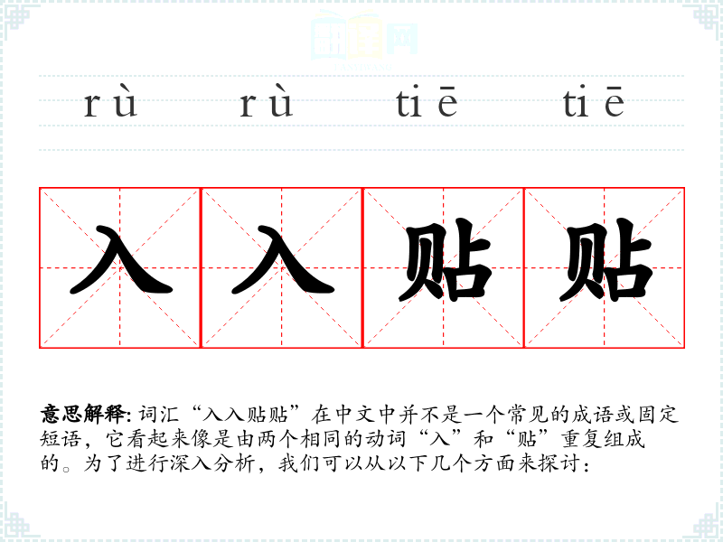 - 字面意思:由于“入入贴贴”不是一个标准词汇,我们可以尝试解释每个字的意思。