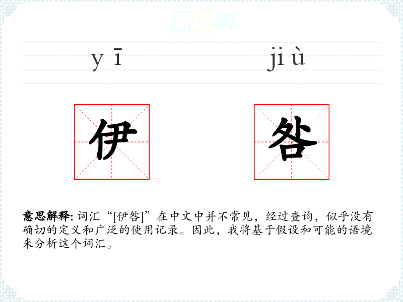 词汇“[伊咎]”在中文中并不常见,经过查询,似乎没有确切的定义和广泛的使用记录。因此,我将基于假设和可能的语境来分析这个词汇。