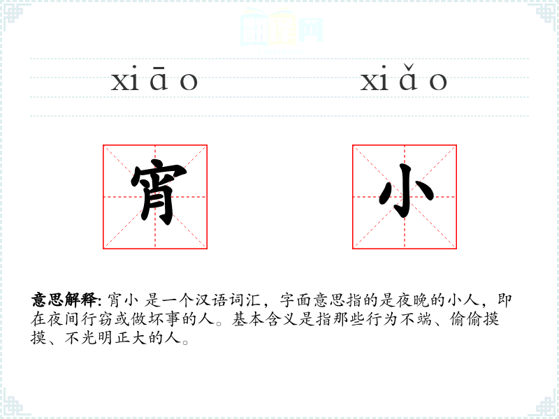 宵小 是一个汉语词汇,字面意思指的是夜晚的小人,即在夜间行窃或做坏事的人。基本含义是指那些行为不端、偷偷摸摸、不光明正大的人。