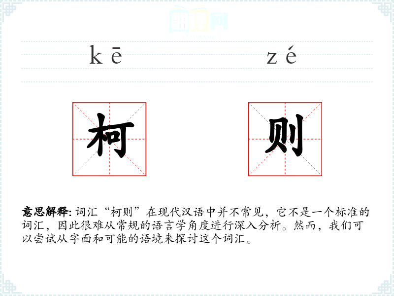 词汇“柯则”在现代汉语中并不常见,它不是一个标准的词汇,因此很难从常规的语言学角度进行深入分析。然而,我们可以尝试从字面和可能的语境来探讨这个词汇。