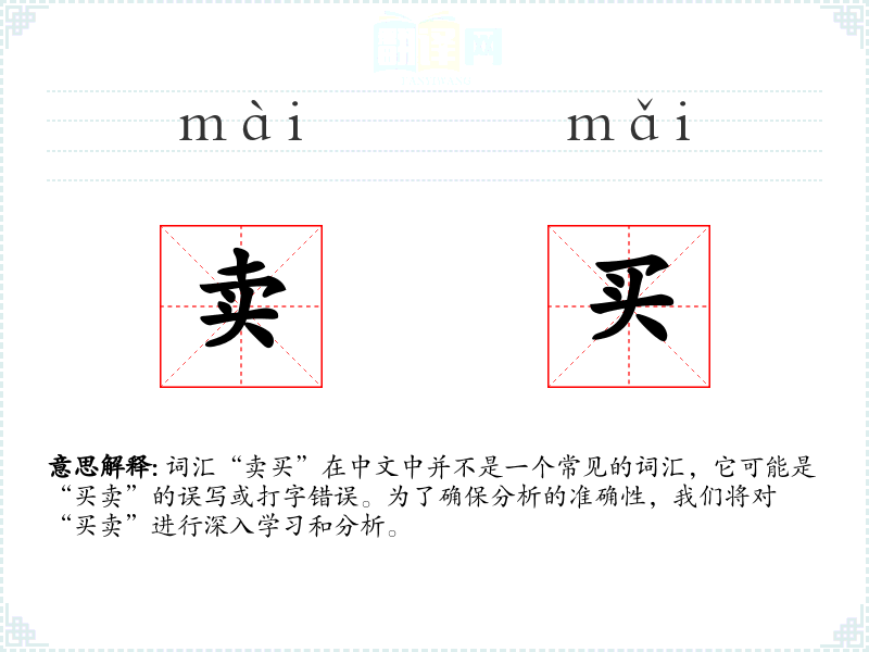 词汇“卖买”在中文中并不是一个常见的词汇,它可能是“买卖”的误写或打字错误。为了确保分析的准确性,我们将对“买卖”进行深入学*和分析。