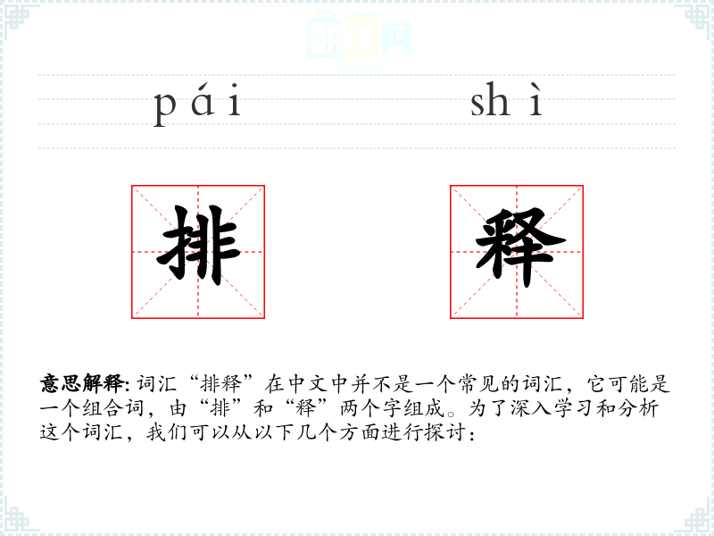 - 字面意思:排释可能指的是排除或释放某种东西,具体含义需要根据上下文来确定。
