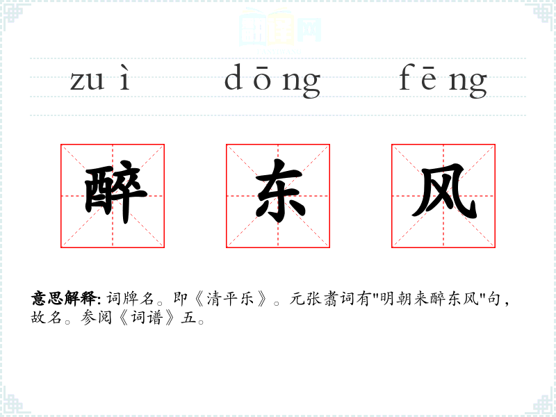 词牌名。即《清平乐》。元张翥词有"明朝来醉东风"句,故名。参阅《词谱》五。