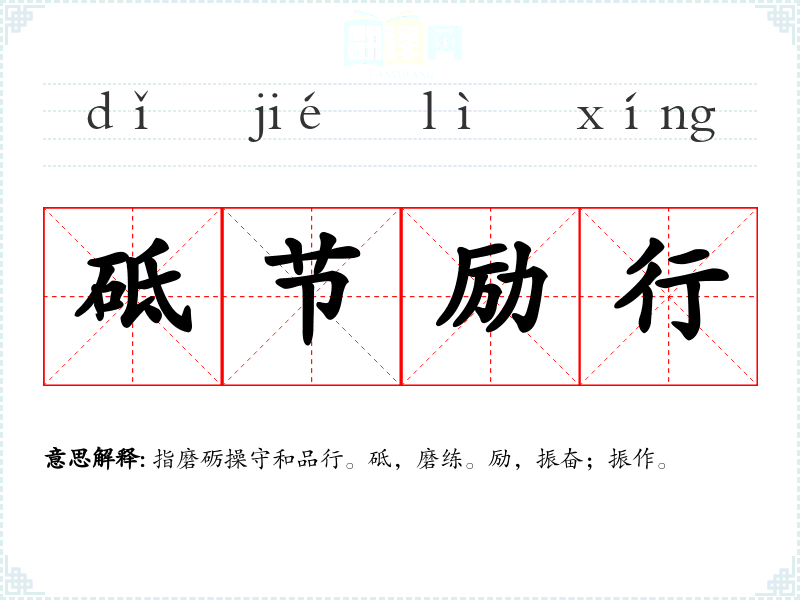 指磨砺操守和品行。砥,磨练。励,振奋;振作。