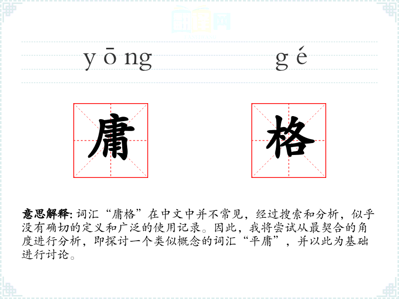 "庸格"的意思解释、庸格是什么意思由翻译网汉语词典查词提供。