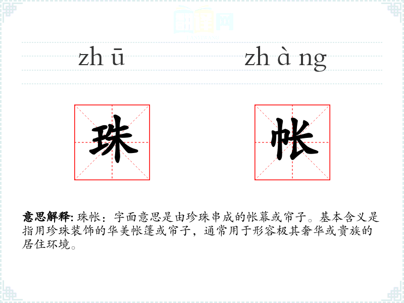 - 专业领域:在珠宝设计或室内装饰领域,珠帐可能指实际使用珍珠串联的装饰品。