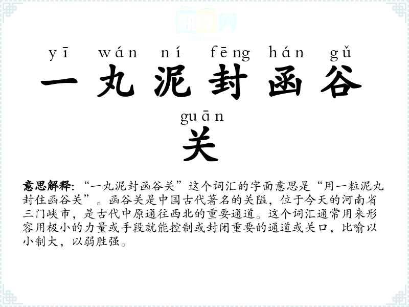- yī wán ní fēng hán gǔ guān一丸泥封函谷关