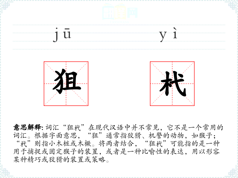 - 词源:“狙”来自古代对猴子的称呼,“杙”则源自木桩的意思。