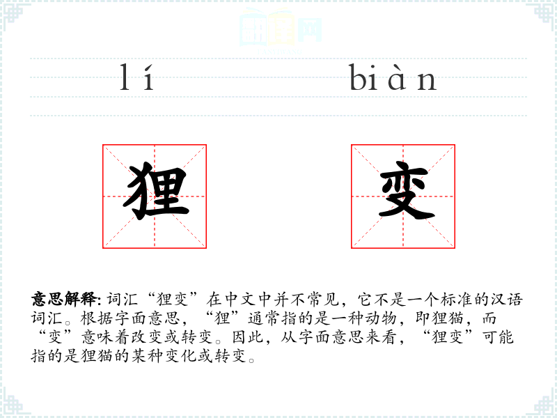 由于“狸变”不是一个标准词汇,我们无法提供一个确切的基本定义。它可能是某个特定方言、网络用语或者是某个特定文化背景下的词汇。
