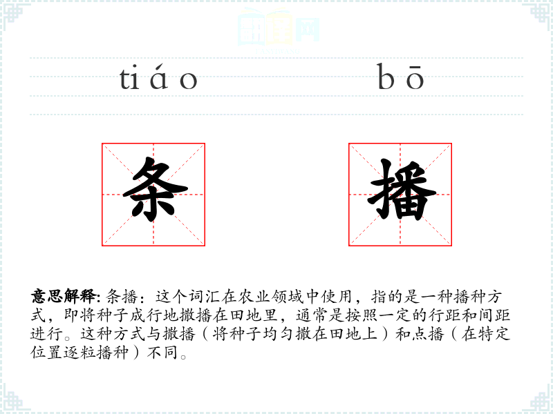 "条播"的意思解释、条播是什么意思由翻译网汉语词典查词提供。