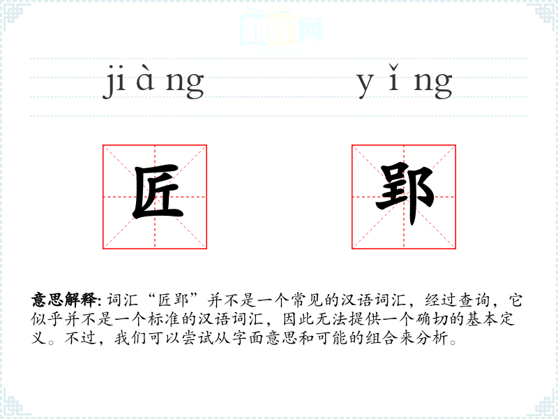 词汇“匠郢”并不是一个常见的汉语词汇,经过查询,它似乎并不是一个标准的汉语词汇,因此无法提供一个确切的基本定义。不过,我们可以尝试从字面意思和可能的组合来分析。