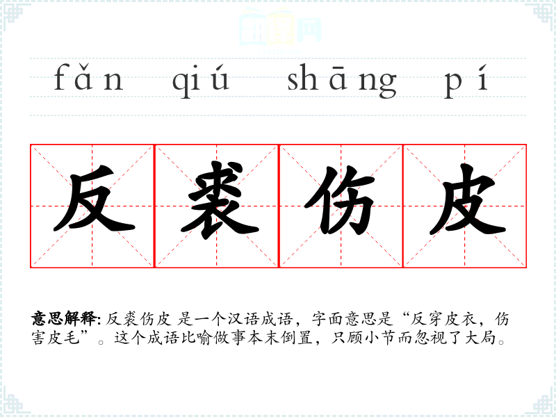 在日常生活中,我曾遇到过因为过分关注细节而忽视了整体规划的情况,这时反裘伤皮 这个成语就非常有启发性。