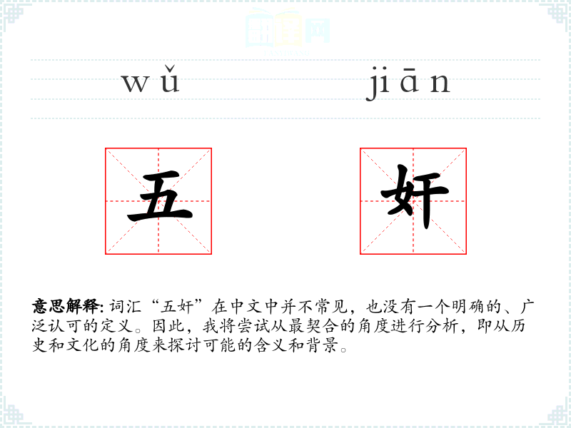 由于“五奸”不是一个常用词汇,它在不同语境下的使用非常有限。在历史文献或特定的文学作品中,可能会提到“五奸”来指代某些特定的历史人物或**,但这需要具体的历史背景知识来解读。