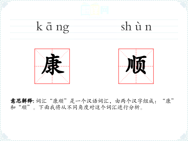 结合起来,“康顺”可以理解为健康且顺利的状态,或者指生活安乐、事情进展顺利。
