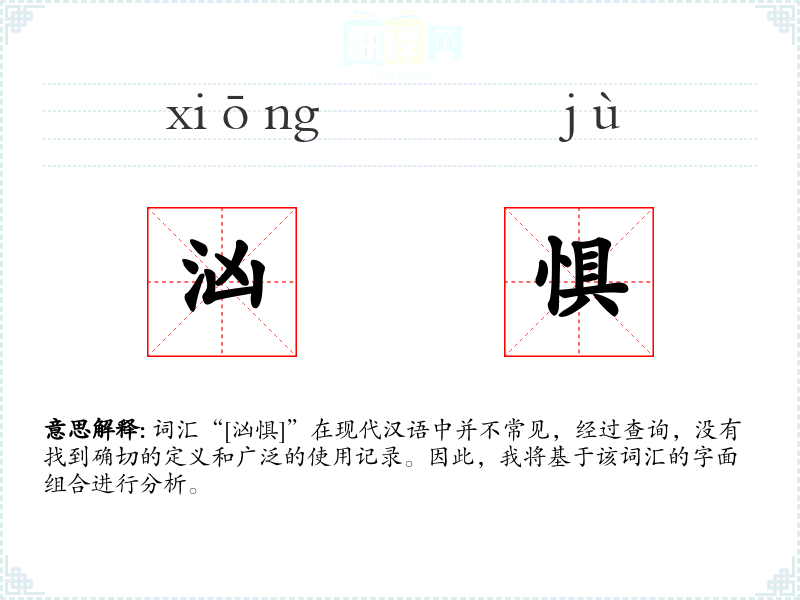 词汇“[汹惧]”在现代汉语中并不常见,经过查询,没有找到确切的定义和广泛的使用记录。因此,我将基于该词汇的字面组合进行分析。