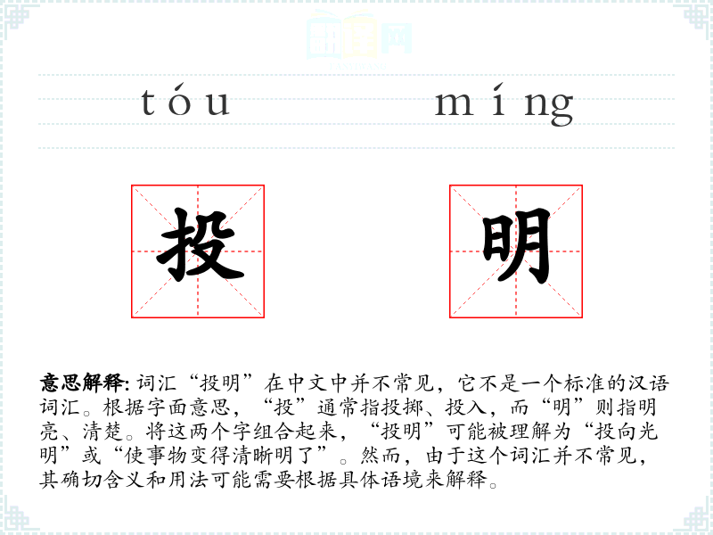 "投明"的意思解释、投明是什么意思由翻译网汉语词典查词提供。