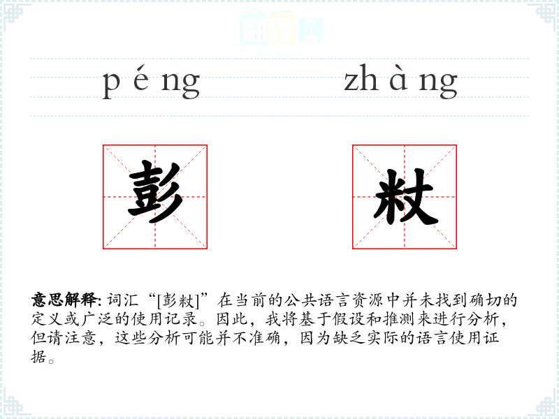词汇“[彭粀]”在当前的公共语言资源中并未找到确切的定义或广泛的使用记录。因此,我将基于假设和推测来进行分析,但请注意,这些分析可能并不准确,因为缺乏实际的语言使用证据。