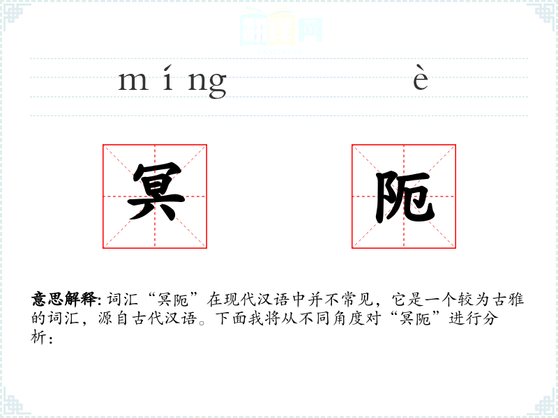 词汇“冥阨”在现代汉语中并不常见,它是一个较为古雅的词汇,源自古代汉语。下面我将从不同角度对“冥阨”进行分析:
