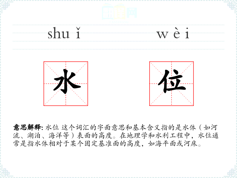 "水位"的意思解释、水位是什么意思由翻译网汉语词典查词提供。