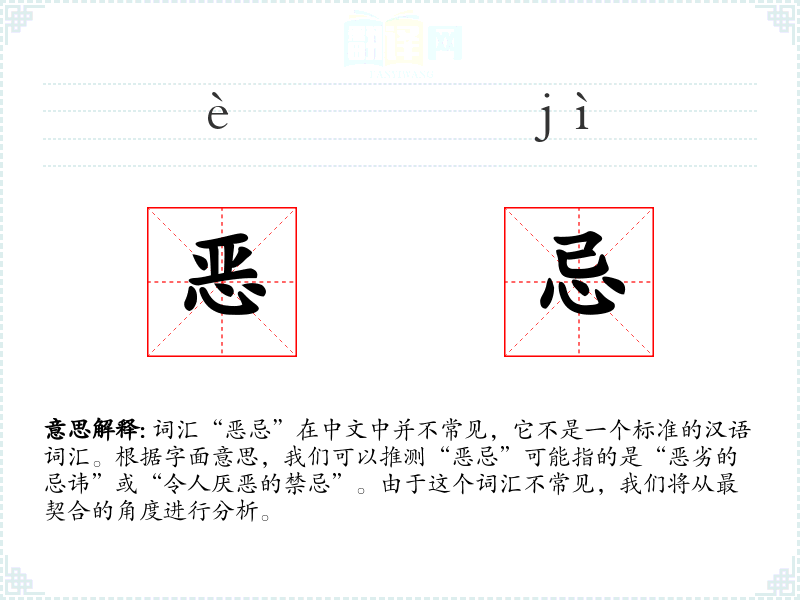 词汇“恶忌”在中文中并不常见,它不是一个标准的汉语词汇。根据字面意思,我们可以推测“恶忌”可能指的是“恶劣的忌讳”或“令人厌恶的禁忌”。由于这个词汇不常见,我们将从最契合的角度进行分析。