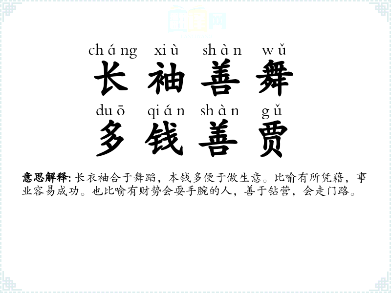繁体長袖善舞,多錢善賈
