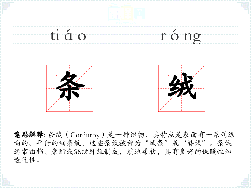 条绒的分字解释