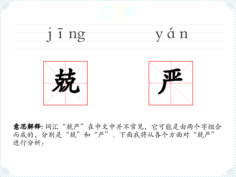 这两个字组合在一起,形成了“兢严”这个词汇,强调了严肃和谨慎的结合。