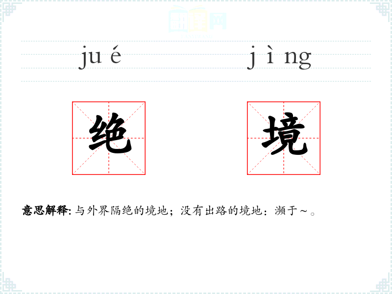 与外界隔绝的境地;没有出路的境地:濒于~。