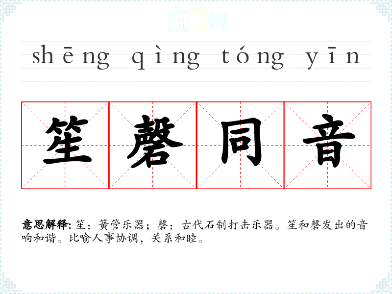 笙:簧管乐器;磬:古代石制打击乐器。笙和磬发出的音响和谐。比喻人事协调,关系和睦。