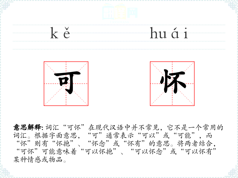 由于“可怀”不是一个常用词汇,它在不同语言或文化中的对应词汇及其使用情况不详。