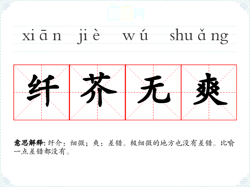 纤介:细微;爽:差错。极细微的地方也没有差错。比喻一点差错都没有。