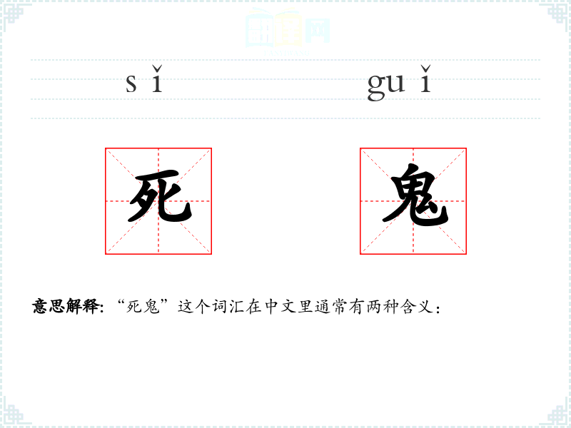 “死鬼”这个词汇在中文里通常有两种含义: