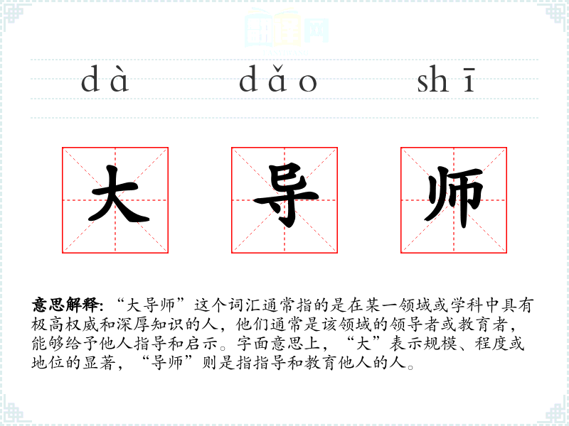 在英语中,“大导师”可能对应“guru”或“mentor”,这些词汇在西方文化中同样代表着权威和指导者的角色。