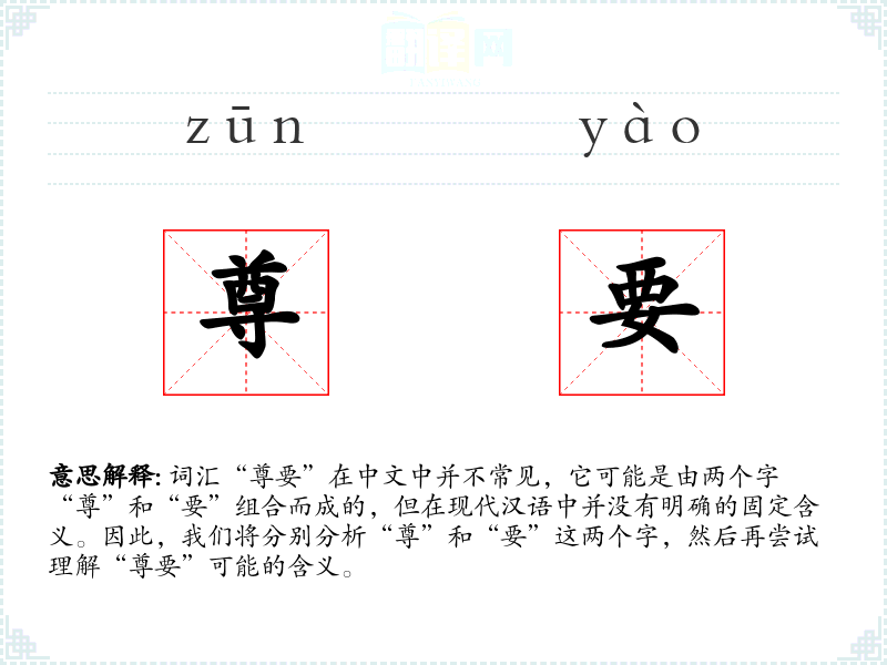 词汇“尊要”在中文中并不常见,它可能是由两个字“尊”和“要”组合而成的,但在现代汉语中并没有明确的固定含义。因此,我们将分别分析“尊”和“要”这两个字,然后再尝试理解“尊要”可能的含义。