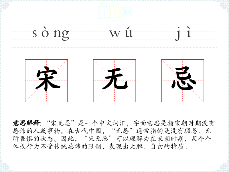 “宋无忌”一词源自**古代历史,特别是宋朝时期的文化背景。随着时间的推移,这个词汇可能被赋予了更多的象征意义,成为形容某个时代或人物特征的标签。