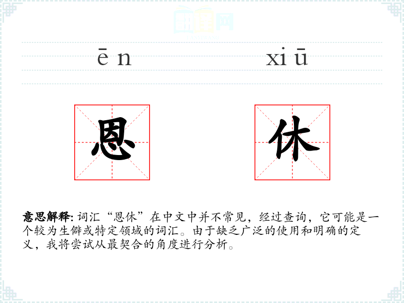 在某些文化或社会背景中,“恩休”可能被用来强调对他人恩惠的感激或对休息的重视。