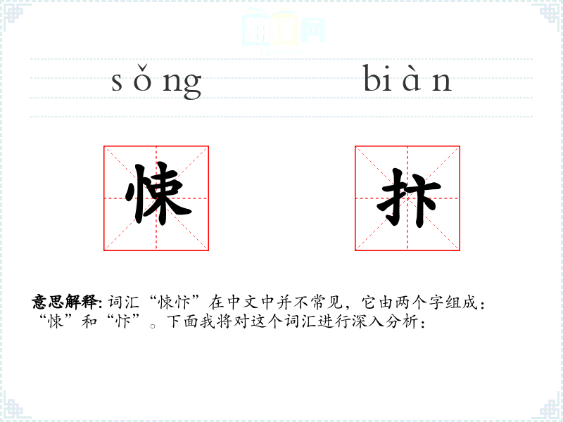 词汇“悚忭”在中文中并不常见,它由两个字组成:“悚”和“忭”。下面我将对这个词汇进行深入分析: