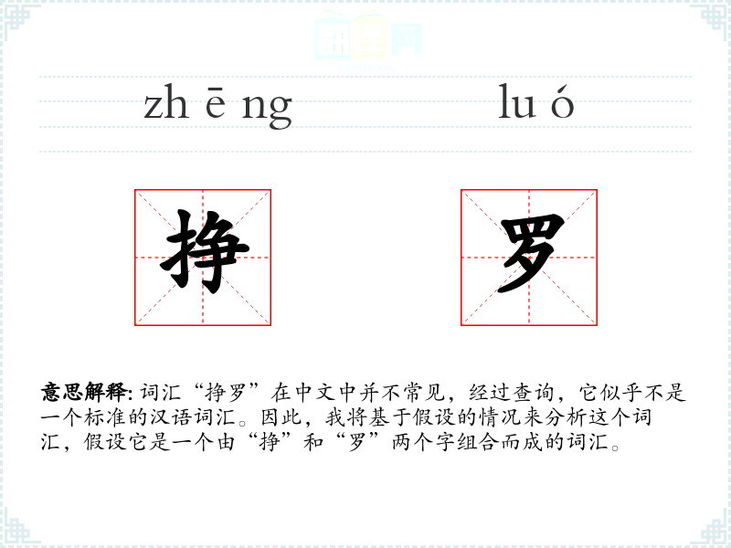 词汇“挣罗”在中文中并不常见,经过查询,它似乎不是一个标准的汉语词汇。因此,我将基于假设的情况来分析这个词汇,假设它是一个由“挣”和“罗”两个字组合而成的词汇。