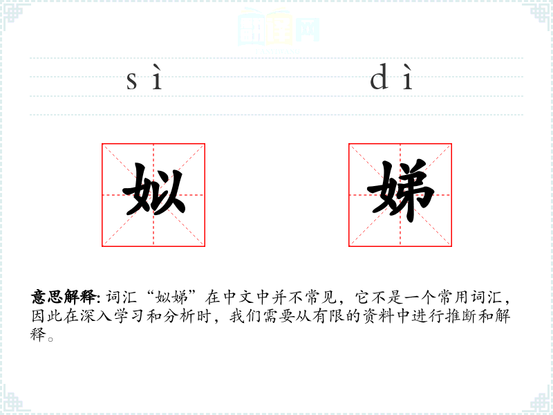 词汇“姒娣”在中文中并不常见,它不是一个常用词汇,因此在深入学*和分析时,我们需要从有限的资料中进行推断和解释。