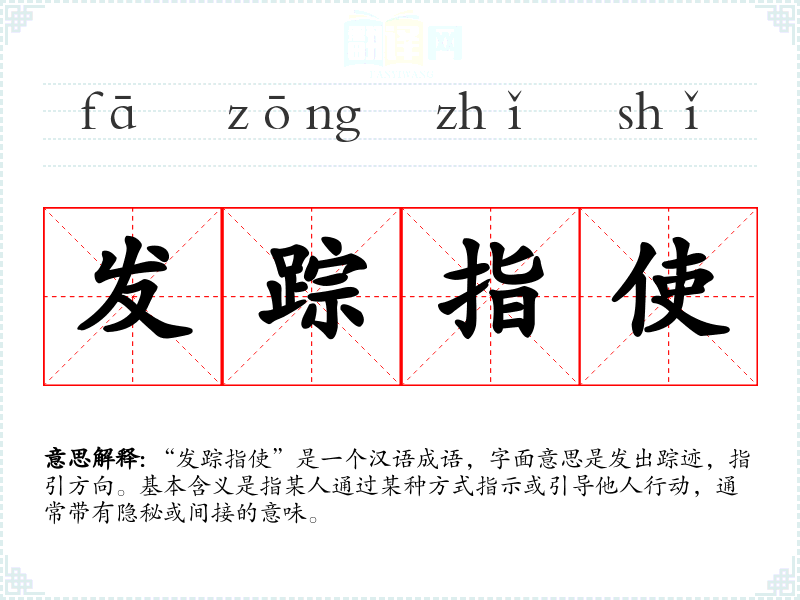 "发踪指使"的意思解释、发踪指使是什么意思由翻译网汉语词典查词提供。