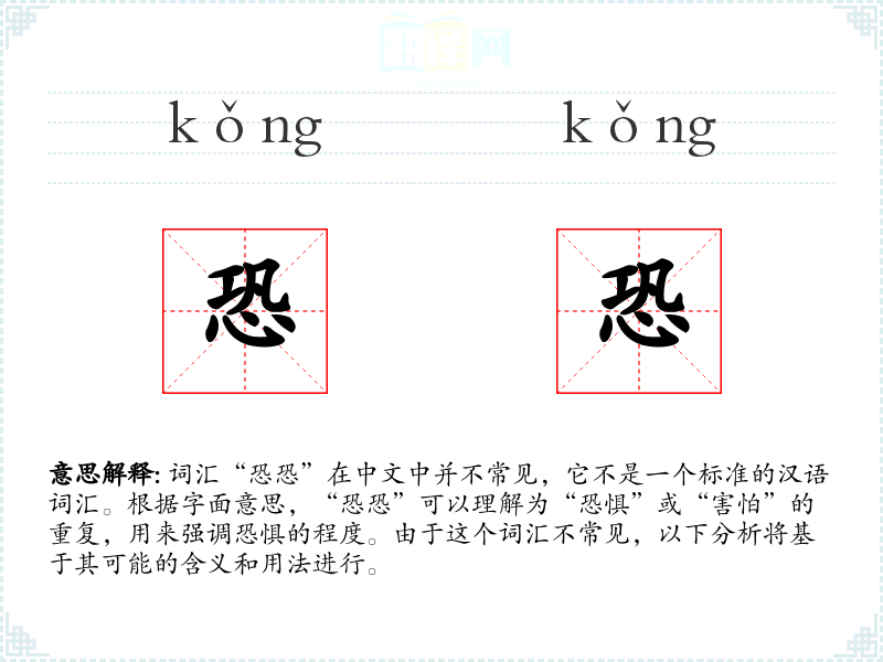 由于“恐恐”不是一个常用词汇,它在不同语言或文化中的对应词汇及其使用情况不明确。