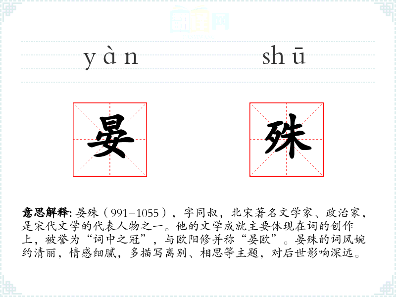 "晏殊"的意思解释、晏殊是什么意思由翻译网汉语词典查词提供。