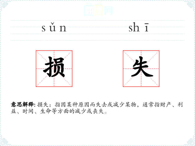 “损失”一词源自古代汉语,最初指“失而复得”,后逐渐演变为指“失去”或“减少”。在现代汉语中,其意义更加明确,主要指财产或利益的减少。
